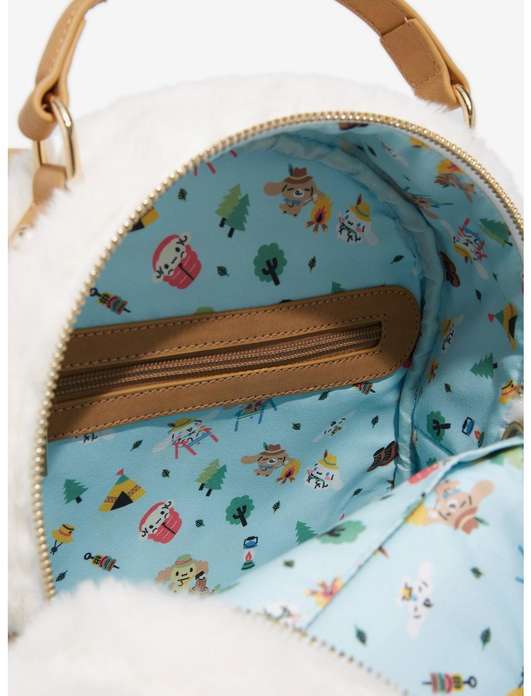 Bring Cinnamoroll with you on your next trip with this Sanrio style mini backpack! From the Cinnamoroll Camping collection, the adorable white dog stars with 3D plush ears and paws, a die-cut hat, embroidered face details, and a 3D fabric bow. This backpack also features a front zippered pocket with a lantern shaped charm and adjustable straps to make carrying your camping essentials a breeze.