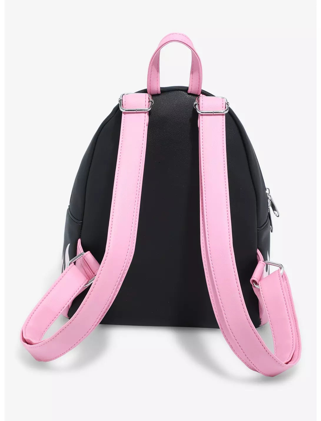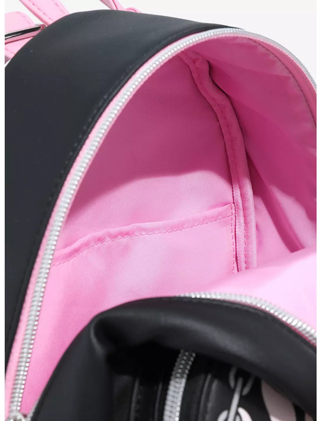 Show off your sweet and mischievous side with this mini backpack! This iconic Sanrio duo can hold your essentials in this fiery bag, featuring a heart-shaped front zipper pocket with Kuromi and My Melody printed on. Comes with interior drop pocket and silver-tone hardware.