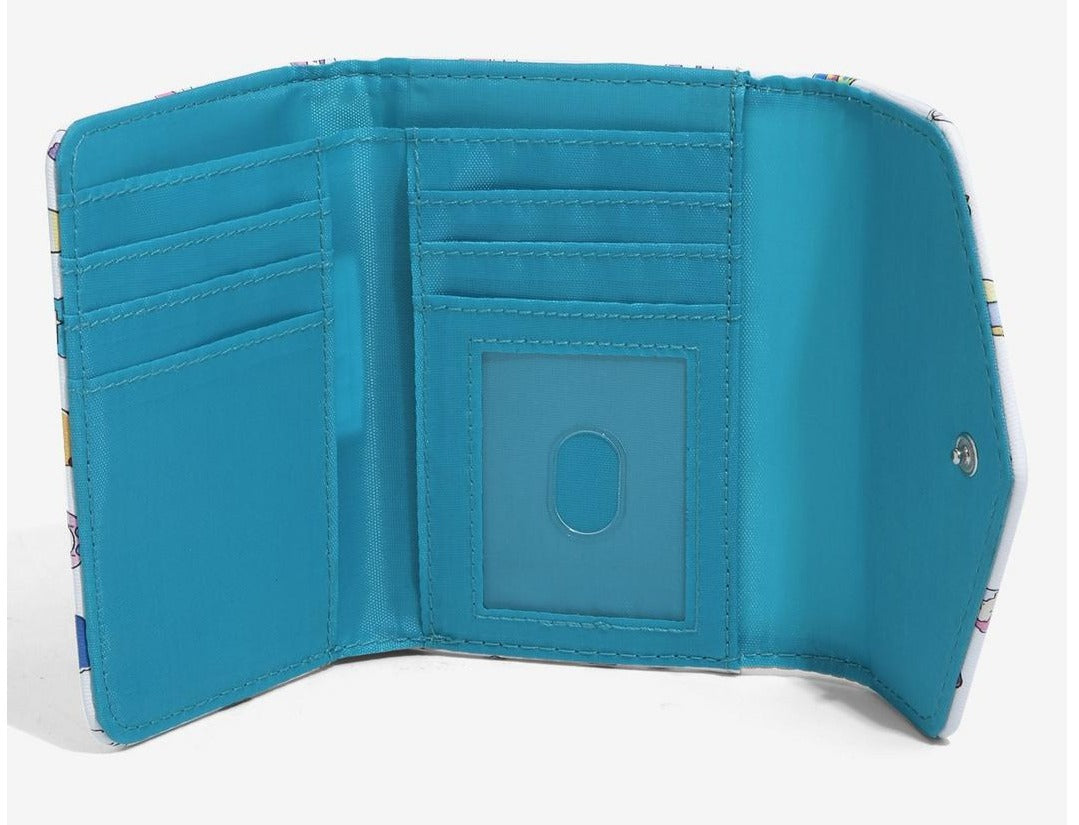 Your favorite Sanrio friends have been given a Digimon makeover! Part of the Sanrio x Digimon collaboration line, this wallet features a Digi-Egg allover print pattern of Hello Kitty, Biyomon as My Melody, and more crossovers for one super cute accessory to any outfit. Also features an enamel brand badge, silver and blue-toned hardware, six card pockets, a bill compartment, and a clear ID sleeve.