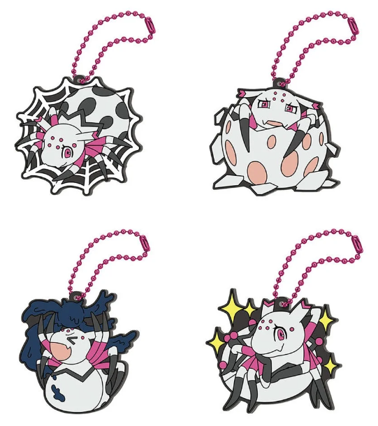 The main character, "Kumoko", a former high school girl who suddenly reincarnates into a spider in a fantasy world, has become a cute rubber mascot! The various forms of her as she grows are designed, and the form names are printed on the back. The ball chain color is pink, reminiscent of her design.