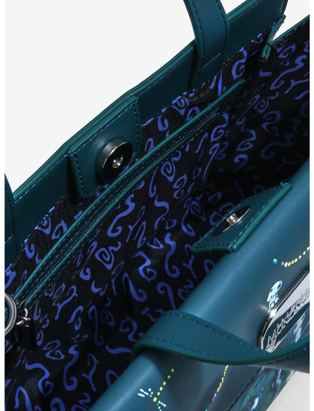 The Kodama have left the forest for a bit of fashionable fun in your wardrobe! Inspired by the animated classic, Princess Mononoke, this handbag from Our Universe features a graphic of the ensemble on the bag's closure flap and die-cut appliqué. Decorated on the back with a graphic of the Forest Spirit in its Night-Walker form, this bag brings the perfect touch of Studio Ghibli to any look! Also features adjustable shoulder straps, an enamel brand badge, silver-toned hardware, and an interior lining pattern.