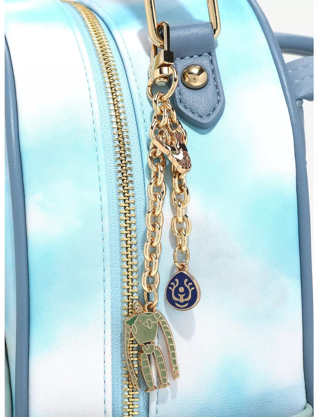 Pack up for your next adventure in Studio Ghibli fashion with this Castle in the Sky-inspired mini backpack! Featuring a portrait of Pazu and Sheeta on the front pocket, this bag includes a removable keychain with charms of icons from the film. With side pockets, artwork on the back, and adjustable straps, this backpack is perfect for adding to your collection.
