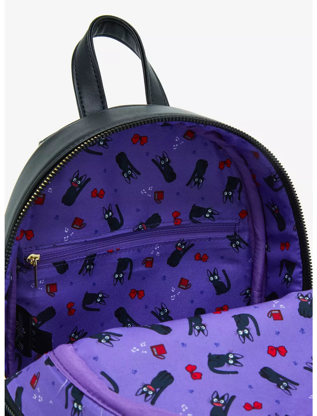Bring Jiji along on your deliveries with this mini backpack from Kiki's Delivery Service! Featuring an allover fuzzy design, with a red bow applique on the front zipper pocket and a Lily charm, Jiji's face embroidered above and 3D ear detailing up top. Comes with adjustable straps, interior zipper pocket, side pockets and top carrying handle.