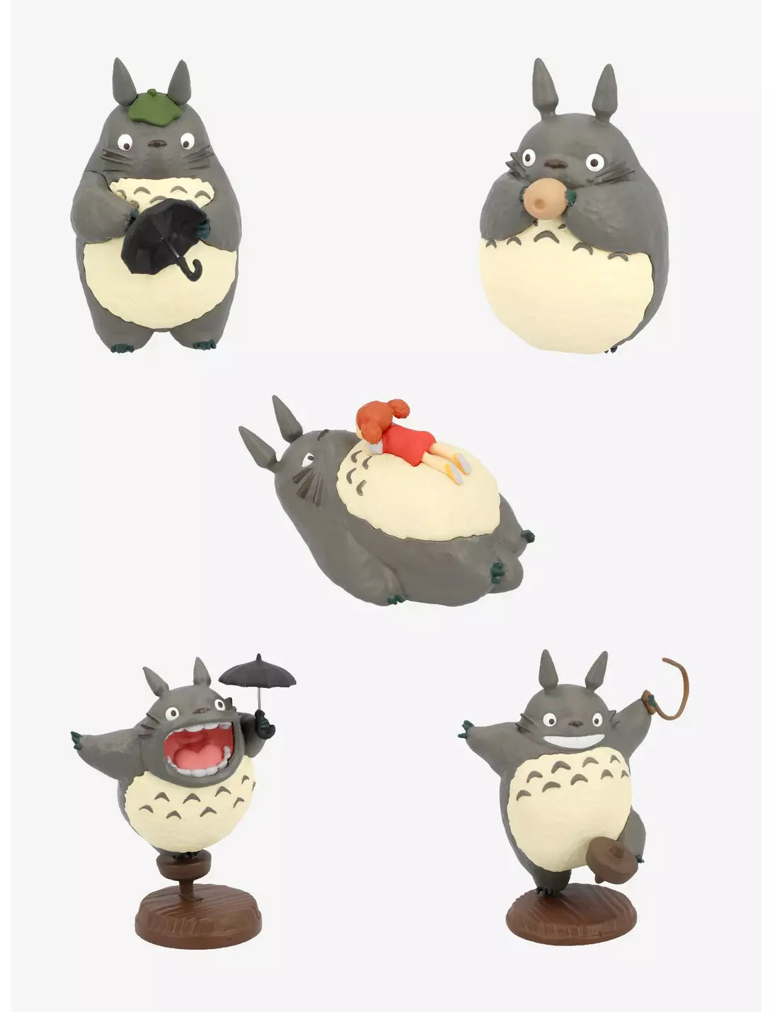 Inspired by Studio Ghibli's classic My Neighbor Totoro, this blind box assortment features 6 new figures of the friendly forest spirit in joyful and adorable poses, including 2 with an umbrella, one playing the clay flute, one playing with a top, and one lounging with Mai! Which will you get? It's a surprise!