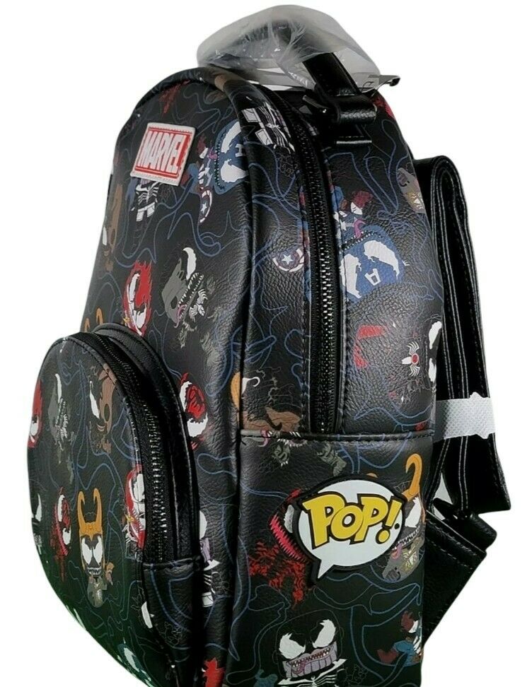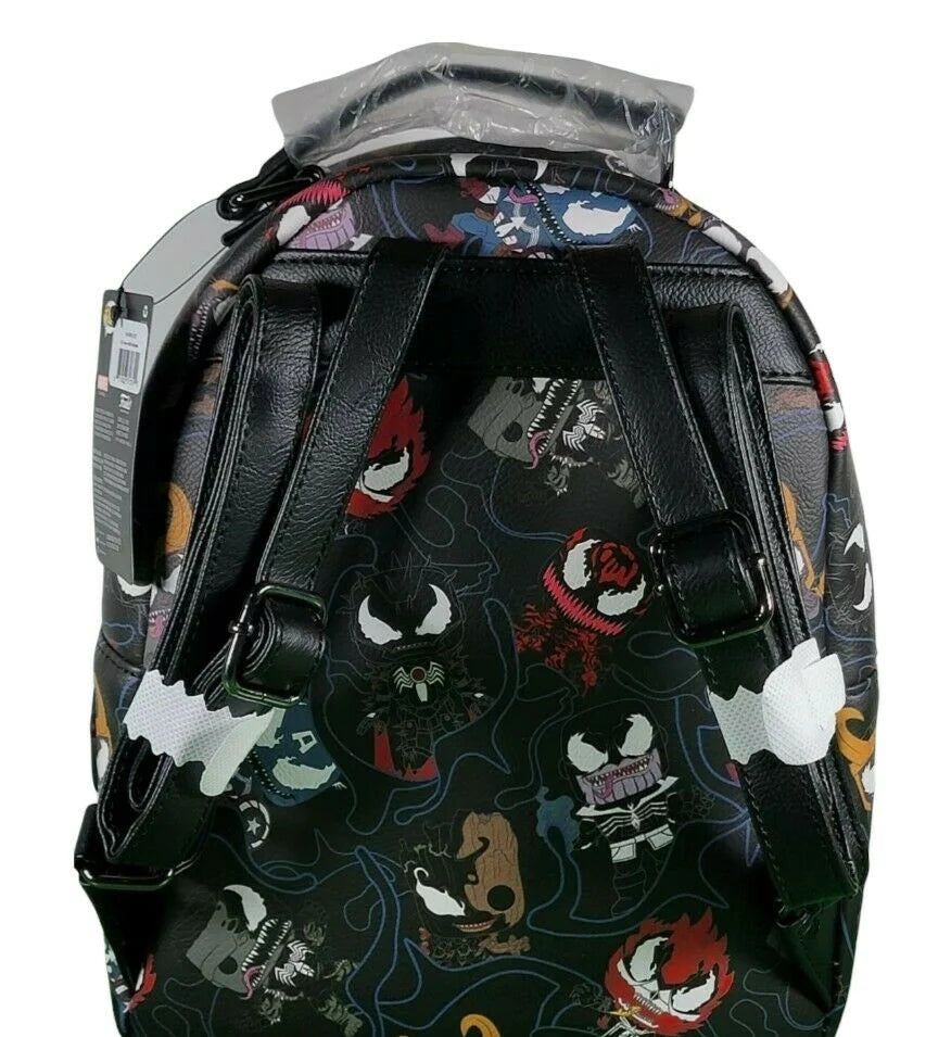 Marvel Venom Venomized Character All Over Print Mini Backpack featuring Venomized Loki, Groot, Ghost Rider, Thanos, Captain America, Hulk, and Carnage.