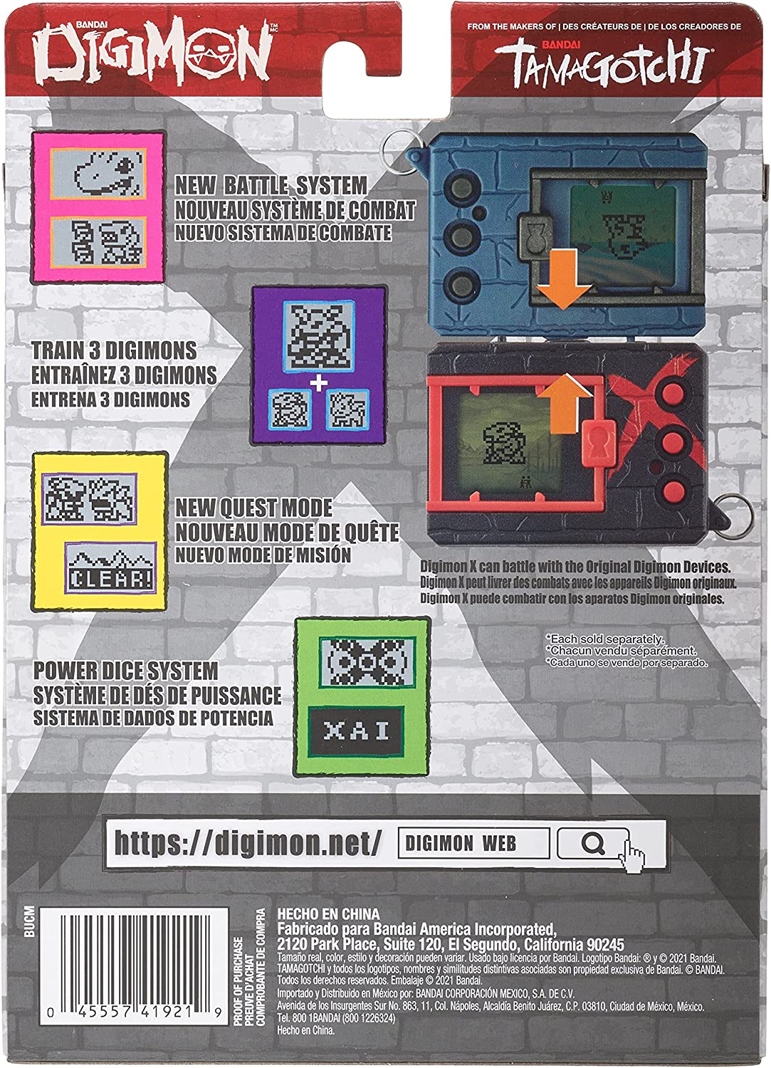 From the creators of Tamagotchi comes a line of Digimon X virtual pets! Raise, feed, train, and digivolve your own Digimon with this handheld device, it even comes with a keychain to make traveling easy! Digimon X can also battle with the original Digimon devices!